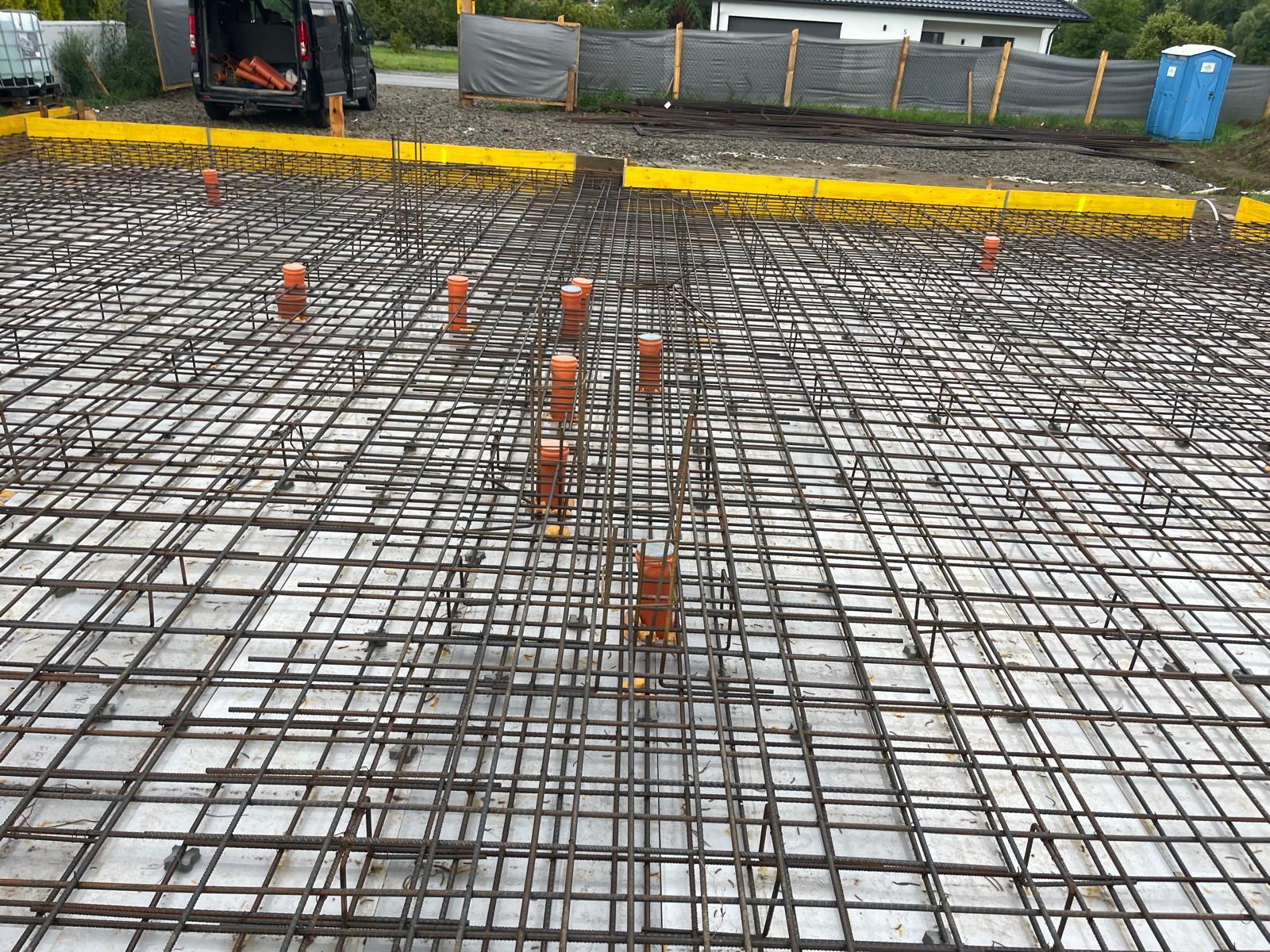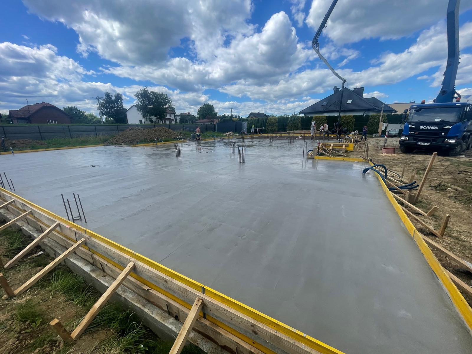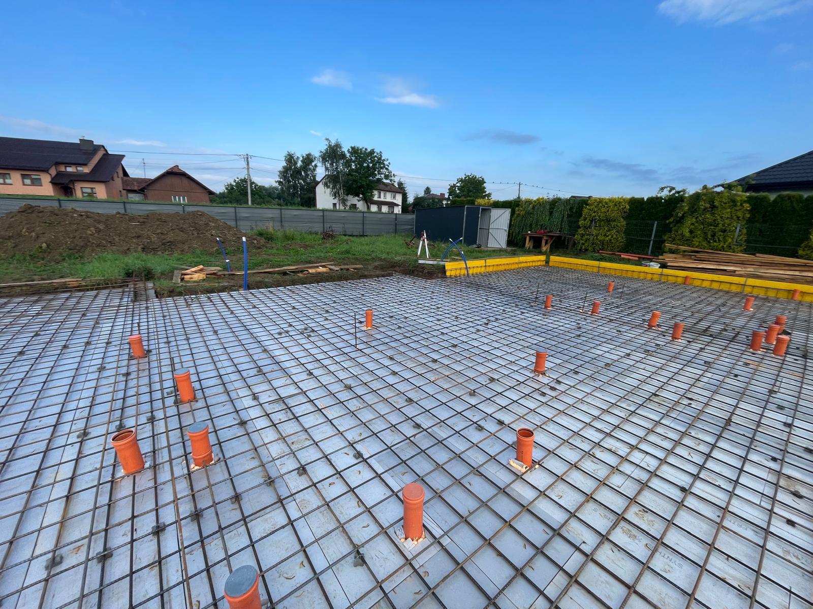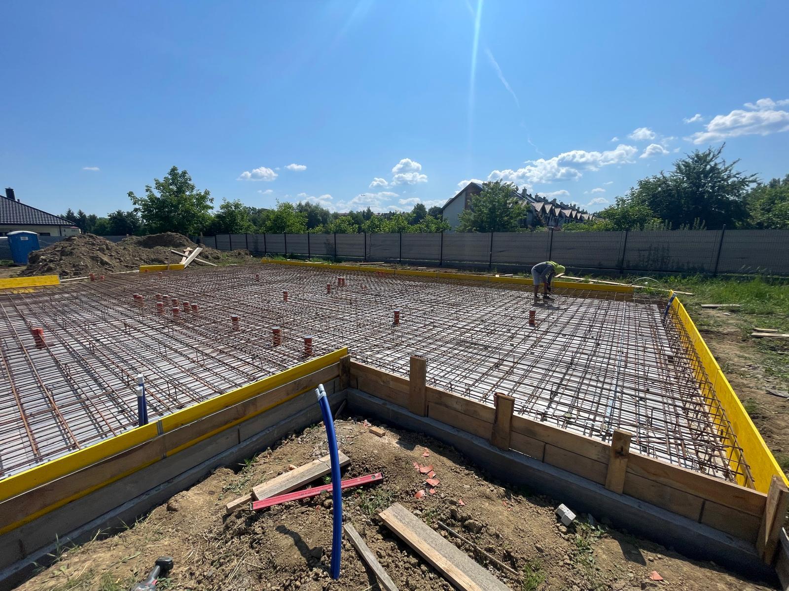 Budynek zostanie posadowiony na płycie fundamentowej o wysokich parametrach nośnych, wykonanej z betonu konstrukcyjnego i wodoodpornego - izolowanej termicznie warstwą styroduru, co gwarantuje trwałość, stabilność oraz doskonałe właściwości cieplne budynku.